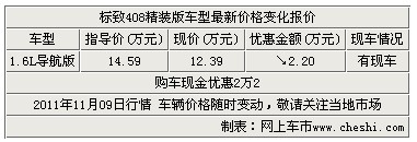 近日,编辑从庞大标致4S店了解到,目前购东风标致408导航版车型直降2万2,店内现车供应,感兴趣的朋友不妨致电咨询,咨询电话:024-22706789