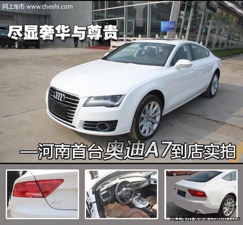奥迪A7作为奥迪家族中首款大型四门轿跑,可谓是集豪华、尊贵、运动于一身,自从奥迪A7这个稀罕的产品系列计划被媒体报道出来后,一直鲜有相关谍照或者进一步的新闻。今天,网上车市郑州站编辑有幸对这款即将上市的奥迪A7进行了到店实拍,下面就一起来看看奥迪A7的独特魅力吧!