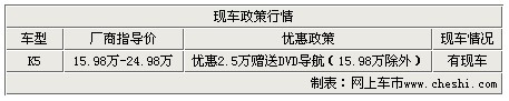 东风悦达起亚 K5优惠2.5万赠送DVD导航
