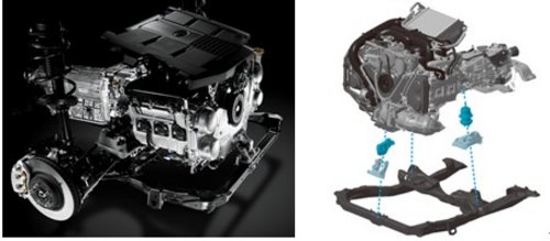 斯巴鲁引入了摇篮式发动机托架技术,摇篮式发动机托架共有四处支撑点与发动机联接,实现对发动机前、后、左、右四个方向的联接和支撑,合理地抑制了发动机的振动,所以实现了更好的缓冲性能,并大大降低了噪音。同时,当车辆发生正面碰撞时,摇篮式托架结构与以往托架结构相比,可大幅增加前方的溃缩距离,能够更好的吸收碰撞所带来的撞击力,避免发动机在撞击事故中受到来自前方冲击时侵入驾驶舱,拥有可靠的碰撞安全性。