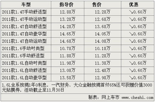 【网上车市 杭州】近日,编辑从浙江一汽汽车4s店了解到,目前宝来全系优惠6000(含节能补贴),详情请见下表: