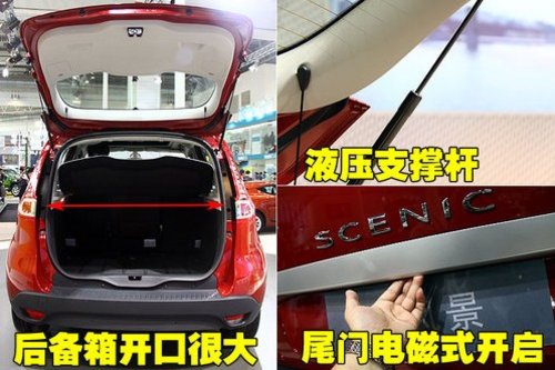 雷诺新风景尾门开启轻巧十分轻巧,尾门配备了双液压支撑杆,保证开启及闭合动作流畅轻松。新风景的后备箱的开口设计角度非常大,消费者在日常存放物品时会更加的轻松。