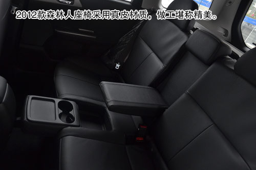 2012款森林人座椅采用真皮材质,做工堪称精美。新森林人的真皮座椅有点赛车的味道,支撑性和包裹性都很强,主驾驶座椅的调节完全是电动的,通过左下方的花瓣状按钮可调节座椅前后及靠背的舒适角度;副驾驶的座椅调节是半自动的,通过副驾驶席下方的拉杆调节座椅前后功能。
