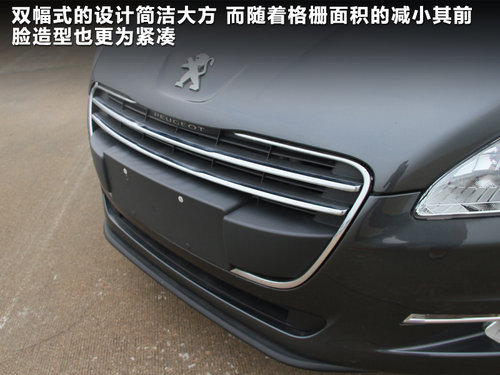 在前脸的上,标致508仍旧采用了标致一贯的大嘴造型,只不过与以往相比,这次的“大嘴”明显要小了许多。双幅式的设计简洁大方,配合面积减小的格栅,使得前脸的造型更为紧凑。