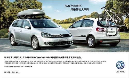 2011年9月25日,大众汽车宣布,高尔夫旅行版正式上市。此次,新车型共分舒适版、豪华版两款。全部搭载1.4L双涡轮增压发动机,售价依次为23.98万元、28.98万元。近日,编辑从进口大众顺德城市展厅获悉,凡购买Golf Variant (高尔夫旅行版)送车顶旅行箱一套(价值15000/套),详细可参考下面表格: