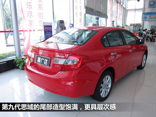 全新的九代思域的外形轮廓和老款相比没有太大差异,不过仔细看,新款思域在车身线条上进行了一些修改。最近一两年,紧凑型家轿占据了很大的市场份额,纷纷推出的改款、换代车型也证明了各大厂商的重视,无论是马自达3星骋,还是刚刚上市不久的东风标致308,都不约而同的成为家轿中的主力军。当然,思域的第九代车型也重新向A级车市场发起冲击。目前鑫广达东风本田4S店内有现车销售,感兴趣的朋友可以到店赏车。