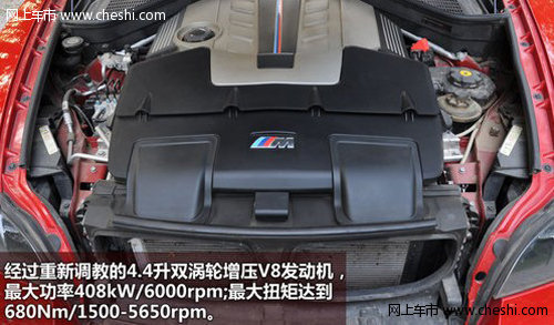 X6 M最大的变化来自于动力部分的升级。这台车搭载了4.4升V8发动机,这款发动机是世界上第一款采用脉冲式调节排气管道,附带高性能双轴双涡轮增压科技汽缸的发动机。当然这款发动机也在X6 xDrive50i上使用,只不过是经过了重新的调教和升级,最大功率408kW(555Ps)/6000rpm,最大扭矩达到了680Nm/1500-5650rpm。