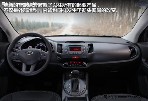 东风悦达起亚智跑采用了全黑内饰,显得非常的运动。整体设计感觉清新大方,让人耳目一新。搭配上多功能方向盘、中控台按键和空调出风口等处的设计, 让这款车显得十分的动感。智跑采用自发光式炮筒式仪表盘,黑底白色光配合红色仪表针让消费者看任何信息都是一目了然。另外在中央数据屏处还可以看到车门关闭信息、照明亮度和公里数等数据,使消费者对车内的情况了然于心。