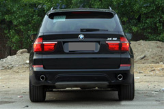 2012款美规宝马X5整体并没有做明显的改动,依旧保持了强劲而锐利的外观设计,只是在前大灯内部添加了镀铬饰装饰条,宝马X5整个灯体看起来更加神采熠熠。从车头望去,2012款美规的前裙板几乎与车身同色,大面积进气格栅和亚银抛光饰条增强了视觉度,气宇非凡。