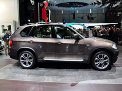 从车头望去,2012款美规宝马X5的前裙板几乎与车身同色,大面积进气格栅和亚银抛光饰条增强了视觉宽度,气宇非凡。 而侧面动感的线条轮廓和L形LED尾灯则又凸显了它高雅的气质;该款车足下装备了19寸轮毂。