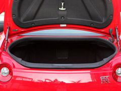 巨大的尾翼以及经典的四个尾灯,还是很能容易辨认出这是台GTR。对于时速能够超过300KM/h的跑车而言,巨大的尾翼在高速行驶作用是十分明显的,有效地减少GTR在高速行驶时的空气阻力。2012款GTR内饰基本没有改变,黑色的内饰很符合GTR跑车的身份,车内同样能看到GTR三个字母,时刻提醒你坐的是日本国宝级别的跑车―GTR。
