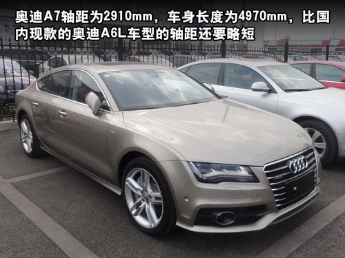 奥迪A7是奥迪最新推出的豪华Coupe车型,外形尺寸方面,奥迪A7的轴距为2910mm,车身长度为4970mm,比起国内现款的奥迪A6L车型的轴距2945mm/车长5035mm还要略短一些。但并不能颠倒两款车型的定位,实际上从车型编号上也可以看出他们之间的关系,在配置的丰富程度上,你完全可以将A7看作是一款轿跑版的A8。