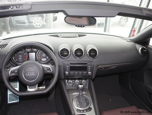 TT的内饰采用了大量的铝合金饰板,整个车室弥漫着金属美感??盏鞒龇缈?、仪表盘和其他按键均以圆形为基调,藉以和圆滑的外形相呼应。这些一丝不苟的设计充分显示出其出类拔萃的名门风范。由皮革与alcan ta ra面料制成的运动式前座,高度连续可调,还有加热功能,另外tt还有四种音响系统可供选择。