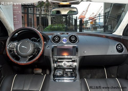 XJ的内饰多处采用桃木和真皮装饰,极具豪华气息,独特的环绕式仪表板,其前端中央位置传统的指针仪表被一个巨大的LCD屏替代,极富科技气息,圆形进气孔更是为新XJ的驾驶座舱增添了跑车般的运动气息。