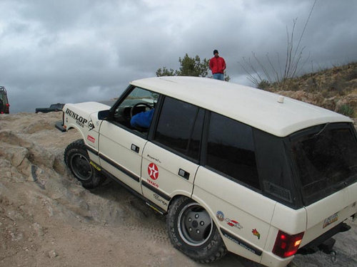 看到这辆初代览胜的硬桥硬马的前后轴了吗?配合超大行程的避震结构,经典版览胜拥有非常优异的路面适应能力,其越野性能不会比卫士差太多。