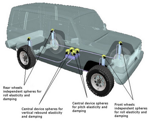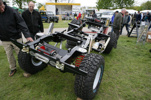 上图是卫士的底盘总成,可以清楚的看清粗壮的大梁结构和前后桥,初代览胜在本质上和卫士是一样的。
