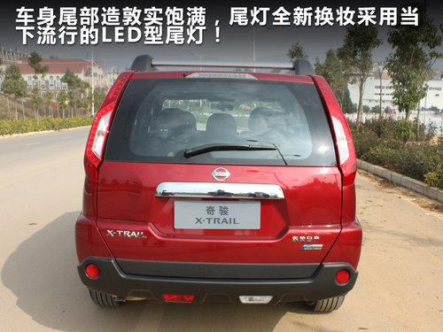 尾部新款奇骏的改动幅度并不大,仅是对尾灯罩的配色进行了改良。原本带有卤素尾灯改头换面成为了时下流行的LED型尾灯,不仅使用寿命更长、启动速度快,同时也给消费者焕然一新的视觉感受。保险杠采用的黑色质地包裹,让奇骏更加充满野性。