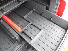 如此灵活多变的行李空间为出行储物提供了充足的保障。后备箱带有工具箱抽屉,而且有这么多的工具隔,这样的设计无论是常规家用还是对于爱好越野的人士来说都是非常实用且人性化的设计!