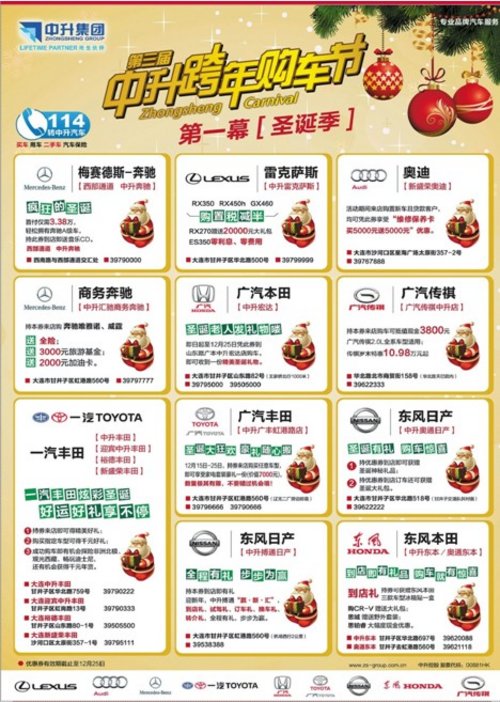 中升搏通日产:1.12月15日-25日到店即可领取圣诞小礼物(红包、圣诞果等),订车还可获赠圣诞礼物一份;2.12月22日-1月3日到店订车即送新春礼包一份(王老吉礼品盒、新春红包)。