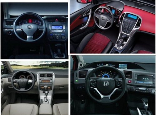 从上表不难看出,虽然4款车型的动力水平已经相当。但配置差异明显,呈现三个等级,英朗GT1.8L 自动时尚型配置最低,基本的电动真皮座椅、ESP电控车身稳定系统都缺失;卡罗拉和速腾配置相当但依然有明显缺失,卡罗拉1.8 GLXi CVT虽有真皮座椅但无ESP电控车身稳定系统,速腾 1.4TSI 自动技术型则反过来有ESP无电控真皮座椅,新思域的配置最高,电动真皮座椅、ESP电控车身稳定系统、多功能方向盘、倒车影像、氙气大灯统统匹配,此外本次新思域还有一项全新的独家智能高科技配置:ECON智能化绿色节能辅助系统,只要打开ECON系统,车辆便自动进入优先控制油耗模式,通过控制节气门开合与智能调节空调工况,并通过仪表的颜色变化来改善驾驶者的不良习惯达到节省燃油的目的。从对比中可以看出新思域各项配置实用且全面,而新思域的价格又是四款相近价位档中最低的,配置性价比高,看来最新上市的车型就是有优势,颇有一骑绝尘的气势。