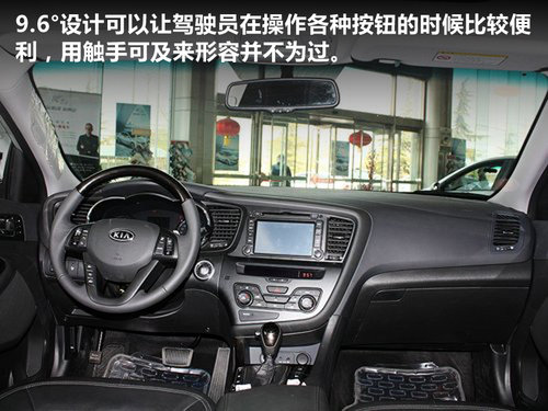 K5的中控台设计和它的外观一样比较酷,厂家方面称它向驾驶员一侧倾斜了9.6°,通过实际使用倾斜的角度设计的确可以让驾驶员在操作各种按钮的时候比较便利,用触手可及来形容并不为过。