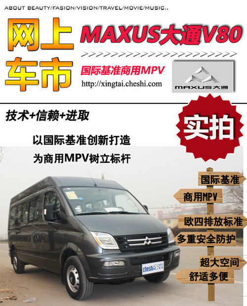 【网上车市邢台讯】MAXUS大通,这名字大家看上去可能有些陌生,MAXUS是英国商用车品牌,2009年被上海汽车收购并引入中国命名为“MAXUS大通”。V80是MAXUS大通的首款产品,在2011年上海国际车展首度亮相。迄今为止关于V80的图片及报道都少之又少,近日网上车市编辑于邢台经销商处得知MAXUS大通V80现已到店,让我们一起来瞻仰这款MPV的风采。
