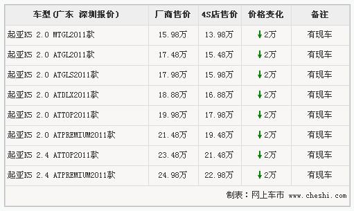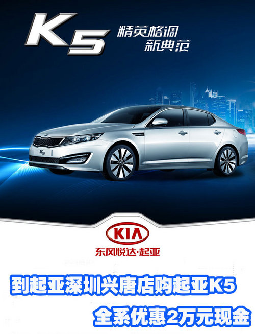到起亚深圳兴唐店购K5 全系优惠2万现金