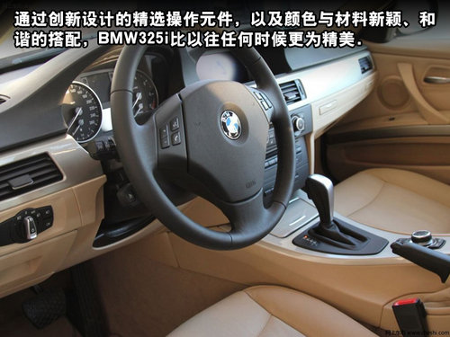 内饰方面,通过创新设计的精选操作元件,以及颜色与材料新颖、和谐的搭配,BMW325i比以往任何时候更为精美。驾驶者可以通过高质量材料和富于表现力的颜色等多种方式展现自己的个性。在宝马提供的11种颜色的Dakota真皮座椅套,包括三种新颜色:牡蛎色、鞍棕色和红棕色。新系列包括钻石黑和太空灰的亮光装饰条、以及细粒抛光拉毛铝和水平粒状胡桃木装饰。