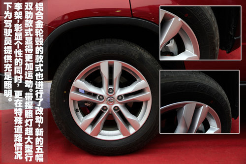 在轮胎方面,新奇骏略有改动,由原先的215/60R17变为了225/60R17,其实这种变化并不是很大,但是这个尺寸使得原本在SUV家族中不占优势的奇骏足可以上升到中游水平,不至于在这一点上吃亏,而且在使用起来更有信心。全新造型的五幅双条轮毂,显得更加运动!