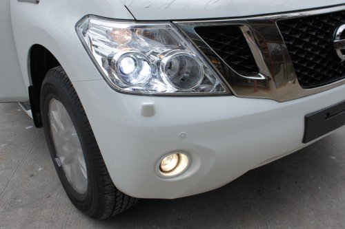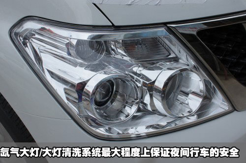 途乐可以算是日产家族中最大的一个车型,所以为了与其相匹配的各个部件也绝对算得上是大号了,这一点从它的前大灯就可以看出。途乐前大灯设计绝对算是见棱见角,与前进气格栅完美的融合到了一起,完全彰显出了日产设计大师们的功底。氙气大灯以及大灯清洗系统,最大程度上保证了夜间行车的安全。敦实的保险杠两侧加装上了两个大号圆形的前雾灯,大小与整车体积相呼应。