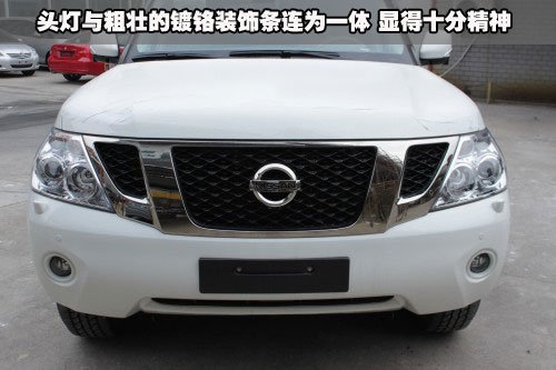 日产途乐是一款将优雅身姿和狂野完美融合到一起的车型,充分演示出了自己的独特魅力。车头设计中,中网的造型可以算是尤为抢眼,大面积的黑色中网配以粗壮有力的镀铬条,将途乐的狂野表现了淋漓尽致,同时也显得异常凶猛。