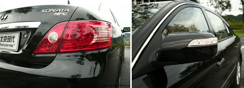 SONATA•领翔的前脸设计大气、稳重,同时又不失别致、时尚的气质,其最引人注目的莫过于两个锐利的前组合大灯,菱形的设计风格使淡定与敏锐的车型气质卓然而出 ;与前大灯相呼应的是两个前雾灯,同样为菱形设计,并且下方增加了非常典雅的镀铬亮条装饰,给整车前脸又增添了一种进取感;在前进气格栅设计上,“SONATA•领翔”采用了当前该级别车型中最流行的宽大式设计,外观更加庄重大方。