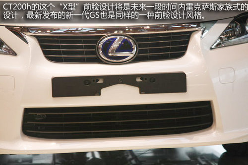 车头设计线条感极为丰富,从发动机舱盖上延伸至中网两侧直到保险杠上的折线相当明显,保险杠下唇突出程度还甚于大哥IS250,突出车辆的运动气质。CT200h的这个“X型”前脸设计将是未来一段时间内雷克萨斯家族式的设计,最新发布的新一代GS也是同样的一种前脸设计风格。