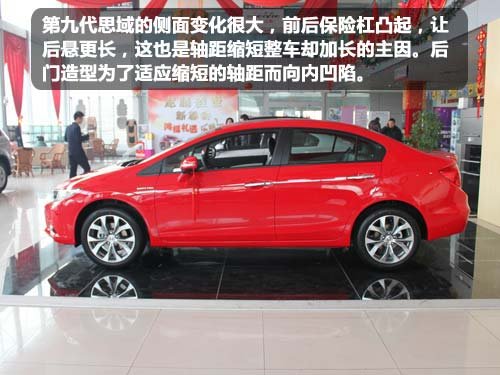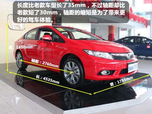 除了外形轮廓不同之外,第九代思域与上一代在车身尺寸上也略有不同,车身长度比老款增加了35mm,但是轴距反而缩短了30mm,这种现象在国内换代或改款车型中的确少见。