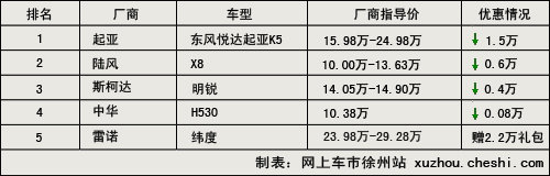 制表:网上车市徐州站 xuzhou.cheshi.com