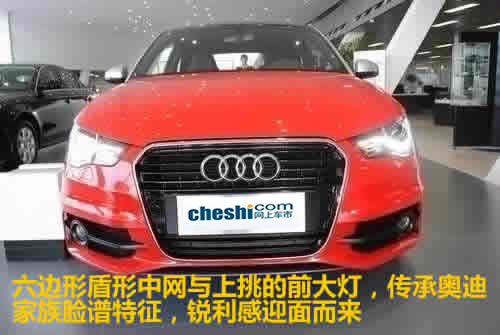 在实车前面驻足欣赏,奥迪A1非但没有迷你车常有的小家子气与可爱容貌,反倒是一阵阵慑人气势袭来!这强烈的感觉,来自新款奥迪四环家族的招牌式水箱罩,新设计的六角折角边框带来了视觉新意,水箱罩面积增大,并搭配了奥迪性能车在前保险杠处惯用的大开口深色进气霸手法,更让A1有了性能车的霸气。