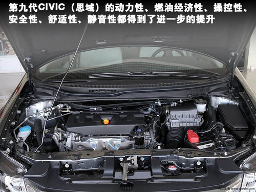 第九代CIVIC(思域)的动力性、燃油经济性、操控性、安全性、舒适性、静音性都得到了进一步的提升。尤其在消费者最关注的燃油经济性和安全性方面,第九代CIVIC(思域)表现尤为突出。通过进一步的改进,1.8L和2.0L两种排量的i-VTEC发动机实现更强动力输出和更低油耗,综合工况油耗仅分别为6.8L/100km和7.4L/100km。通过采用高品质的吸音材料等多项静音措施,第九代CIVIC(思域)的静音性得到较大改善,极大地提高了舒适性。
