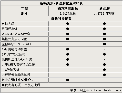 在舒适性配置方面,两款顶配车型自然相当丰富,对于日常驾驶而言,高端的配置足以满足车主的要求,但是不能不说,两款车之间,配置上的差别还是体现出了厂家不同的想法。新??怂勾舜沃鞔虻呐渲门圃谑媸市蕴嵘弦埠敛涣哓模拊砍捉?、无钥匙启动,中控台大尺寸液晶屏,以及十分豪华的SONY音响都出现在配置单里,而新速腾我们则更加熟悉,GPS导航,电动座椅,多功能真皮方向盘都是顶配所具有的。