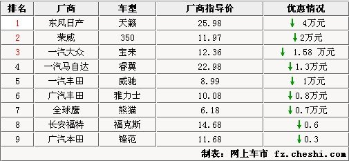 | 制表:网上车市福州站 fz.cheshi.com | ||||