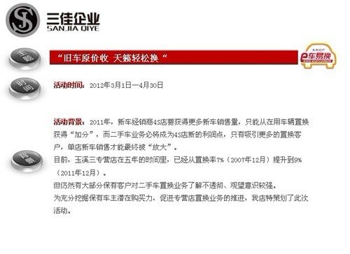 玉溪三佳专营店二手车经理黄超向笔者介绍:“单纯的二手车置换,是消费者用二手车的评估价值加上另行支付的车款从品牌经销商处购买新车的业务。而东风日产‘车易换’服务品牌拥有‘五个一’服务,将消费者卖车买车很好地衔接,使得消费者在置换过程中遇到的风险小、有保证,所等待的周期短、置换快。通过东风日产品牌的信誉保证,使消费者可以放心地进行二手车置换,从而消除了后顾之忧,完成消费者放心、舒心的换购过程。