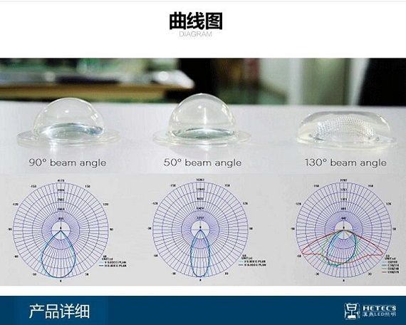 专利光学玻璃透镜,永不泛黄,透光率高,灯效率> 110 lm / w