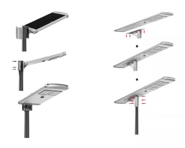 PAD款一体化太阳能路灯采用一体式设计,灯体无打胶。对比市场其他不可拆卸替换的同类产品,PAD款一体化路灯各组件方便维护更换,节省成本。同时所有线材均使用防水公母对插接头,接头都有贴标,具有防接错功能。造型设计用心,体现出严谨又人性化的灯具定制精神。