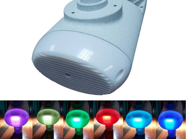第二代一体化太阳能路灯尾部采用RGB彩灯设计,六种颜色轮流不停闪烁,可调节闪烁快慢,也可关闭,给黑夜道路添加了不一样的色彩