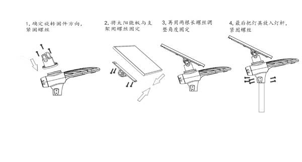 1.安装时太阳能板可根据所处地区情况调节最佳受光角度。安装组件时尽量轻拿轻放,严禁碰撞,敲击,以免损坏。