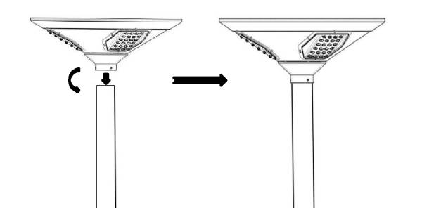 将灯体垂直插入灯杆上,拧紧套筒上的4颗螺丝即可