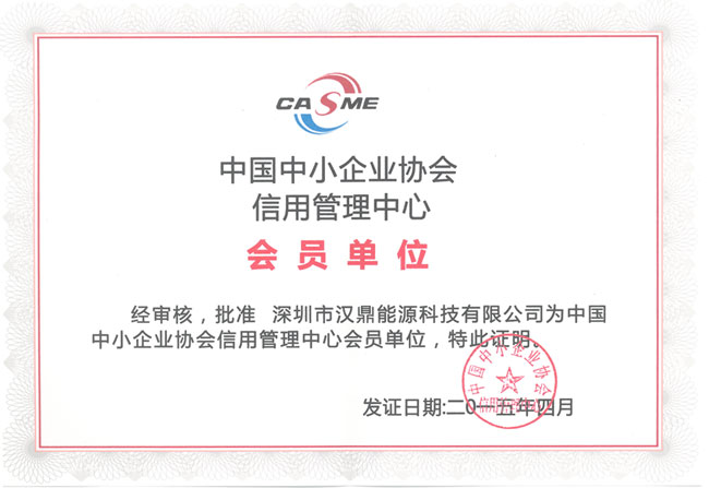 图一:汉鼎成为中国中小企业协会信用管理中心“会员单位”