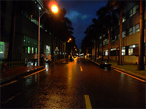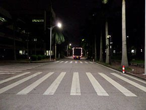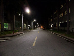 80W LED路灯代替原有250W高压钠灯,共计5盏,杆高6米,杆距20米,路面平均照度比原来用高压钠灯照度高出12 lx。