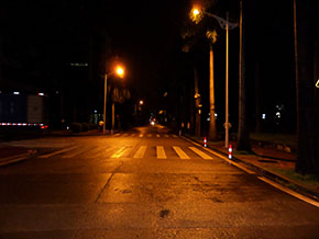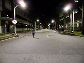 80W LED路灯代替原有250W高压钠灯,共计24盏,杆高6米,杆距20米,路面平均照度比原来用高压钠灯照度高出16 lx。